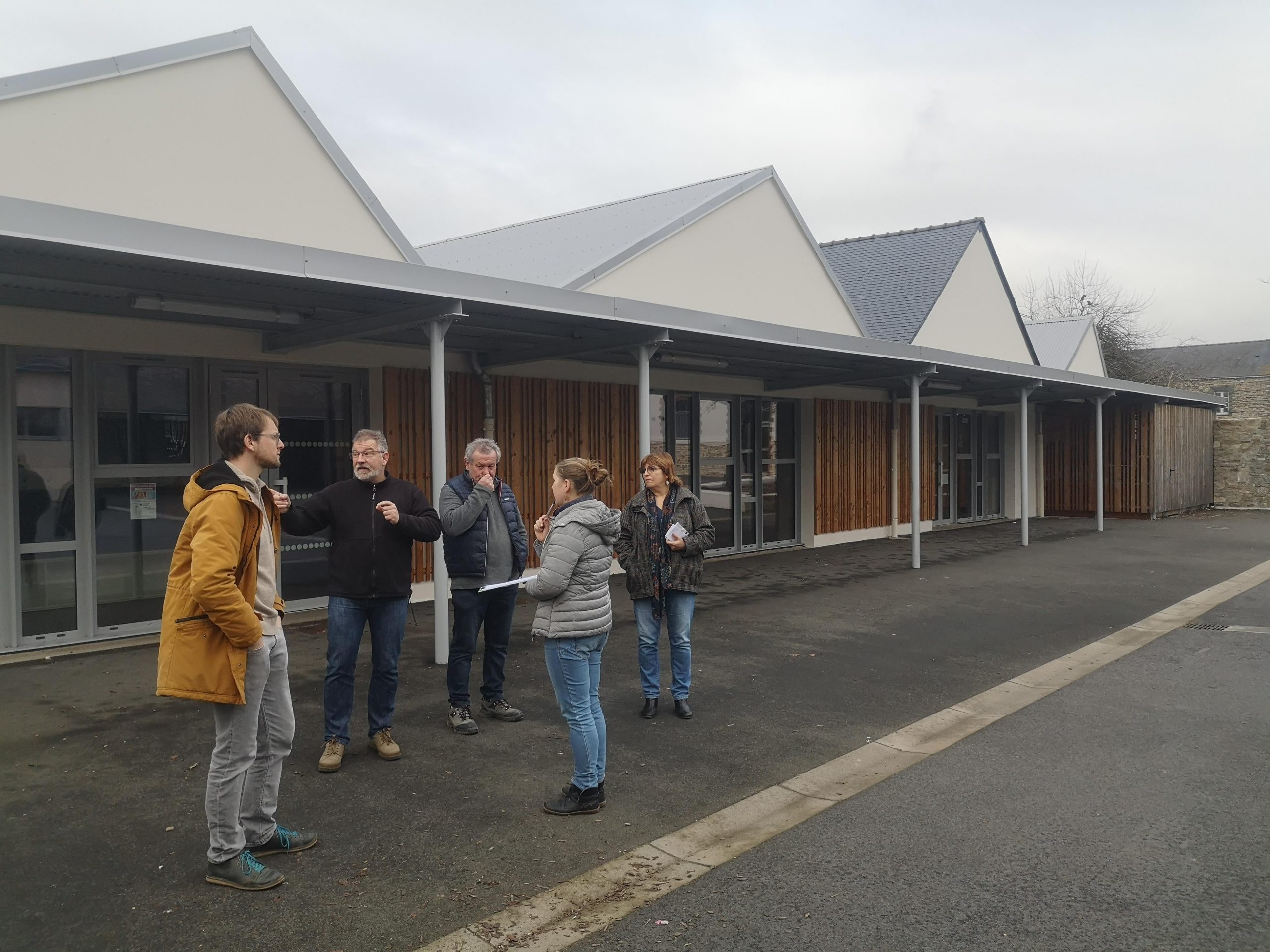 En présence de Claire Masson la maire, Myriam Devingt adjointe éducation enfance et jeunesse, Stéphane Renault adjoint cadre de vie et transition énergétique tous les deux co-pilotes du projet alimentaire d’Auray, Marie Dubois adjointe à l’urbanisme et Josselin Michel maraîcher sur la ferme.