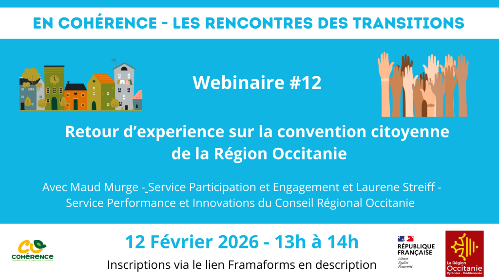 L’association Cohérence a le plaisir de vous inviter à un webinaire dédié au retour d’expérience de la Convention citoyenne de la région Occitanie.