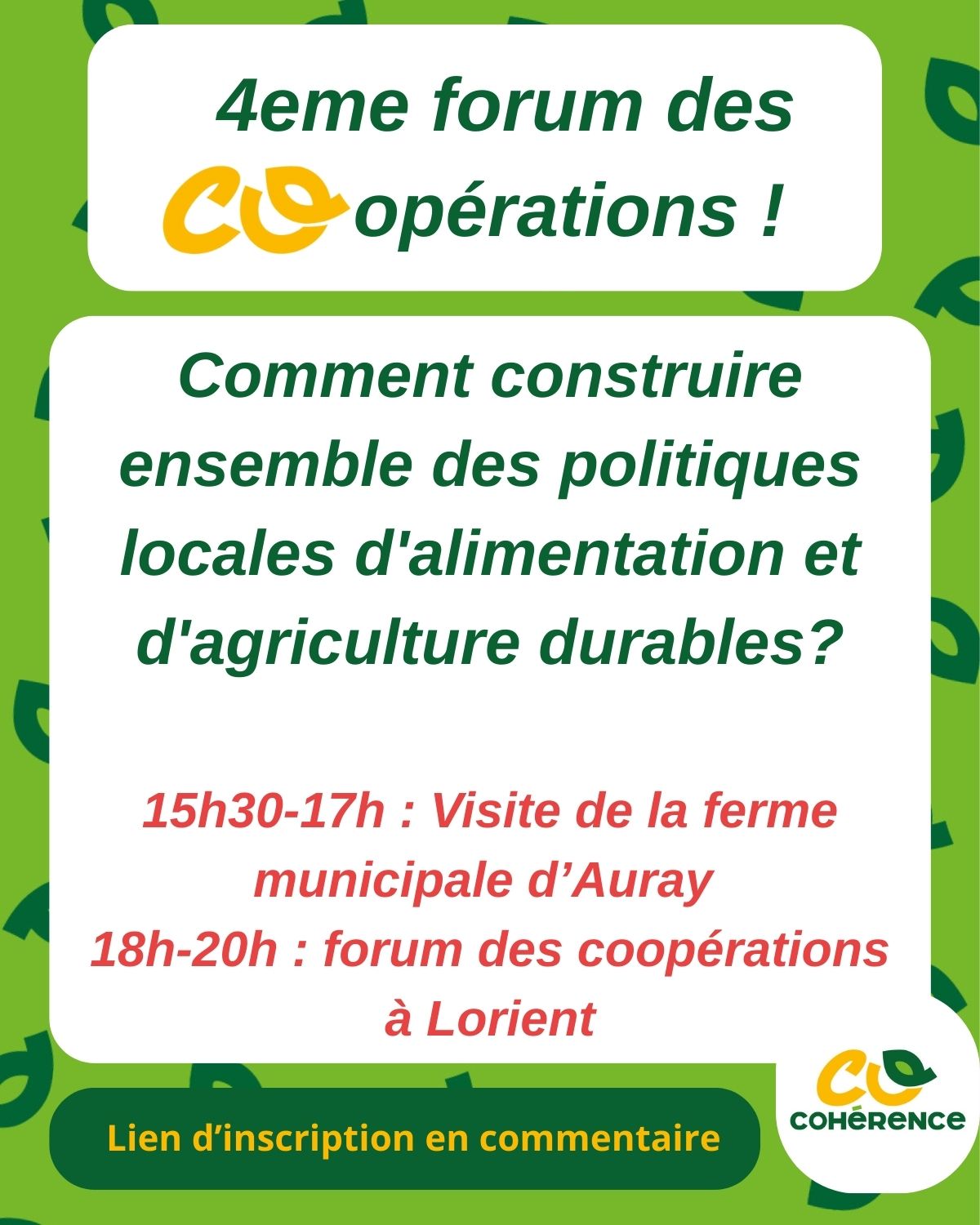4éme Forum des coopérations et visite : « comment construire ensemble des politiques locales d’alimentation et d’agriculture durables ? » – Vendredi 12 Décembre à Auray puis Lorient