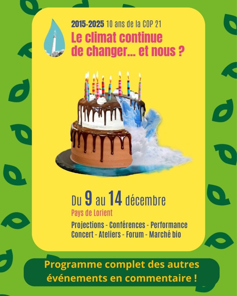 Et tout ceci s’inscrit dans l’événement des 10 ans de la COP 21 Le climat continue de changer… et nous ? Du 9 au 14 décembre Pays de Lorient https://www.biocoop-les7epis.bzh/wp/wp-content/uploads/2025/11/Depliant_Cop21_web2.pdf